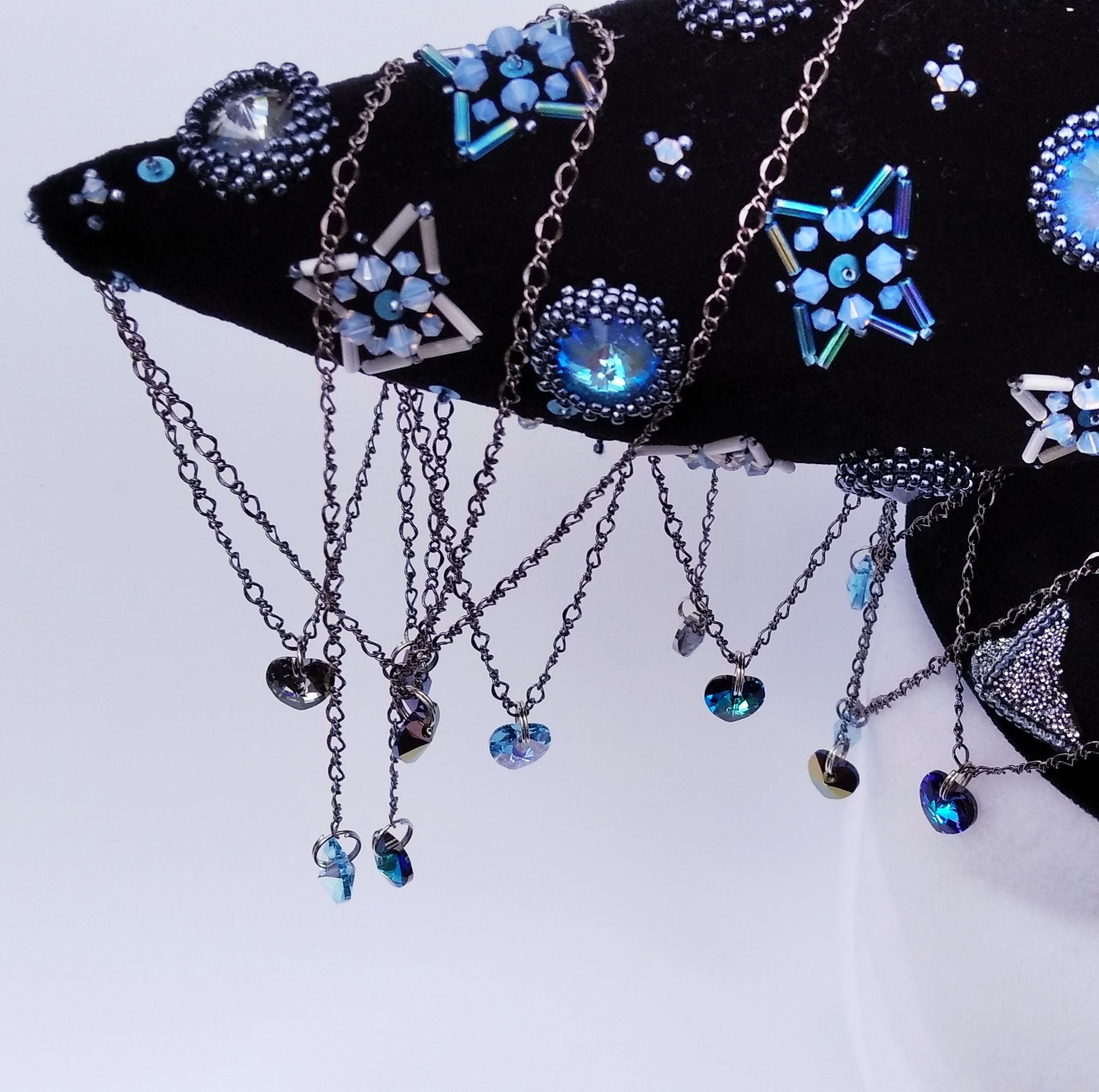 Орден влюбленных кукушат один из самых таинственных и мистических. Почему кукушата? В Зальцбурге говорят: "Когда кричит кукушка, приходит время любви". По народным поверьям, когда кукует кукушка, из горла ее выпадают золото и жемчуг. Последователи ордена издавна имеют тягу ко всему восточному - отсюда китайские мотивы в силуэтах ритуальных одеяний, мистическому - отсюда легкие намеки на астрологию, звезды и млечный путь в вышивке. Столетиями они искали то, что сможет передать их всепоглощающую любовь к миру максимально ярко. Но драгоценные камни и золото были скорее символом роскоши, а не искрящейся радостной любви. Пока однажды в жизни кукушат не появились Сваровски, мгновенно покорившие и пленившие всех. В риволи можно увидеть сияющее утро и таинственные сумерки, биконусы не уступают благородством оттенков настоящим опалам, кристаллическая ткань заставляет думать о космосе и ночном небе, но истинной любовью всех членов ордена стали подвески - сердечки. Чем сильнее влюблен кукушонок, чем дальше он продвинулся на пути безграничной любви ко всему миру, тем больше сердечек украшает его ритуальный костюм.