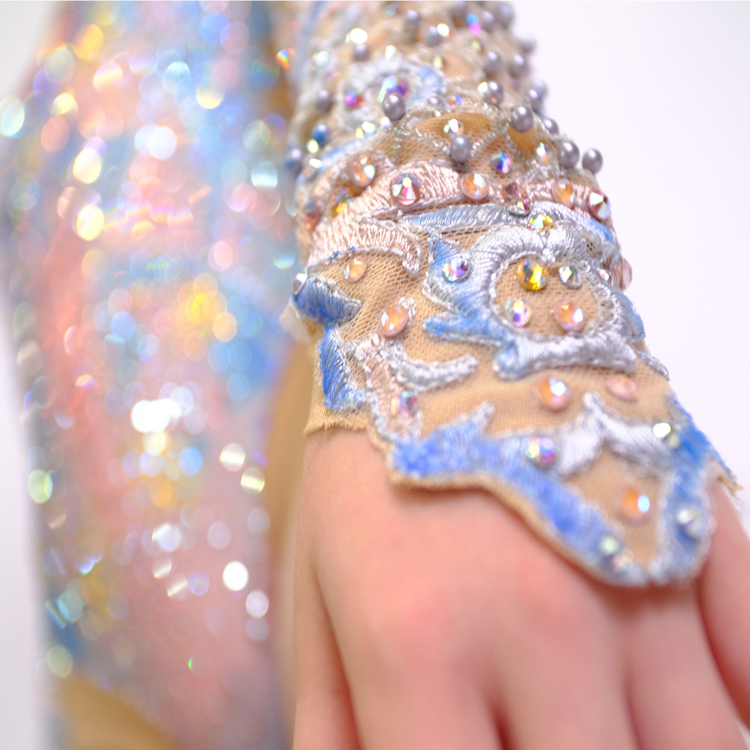 Купальник - это платье на бал для Золушки XXI в. Вдохновением послужила туфелька из одноименного мультфильма анимационной студии «Disney», которую изготовила компания Swarovski. В сказке про Золушку была фея, а в нашей мастерской кристалл "превратился" в платье кропотливым трудом. Сказка в полной мере иллюстрирует тему конкурса, потому что рассказывает о том, что у любви нет преград, а также о доброте, милосердии и красоте как составляющих любви, и о том, что в жизни всегда есть место чуду. Кристальная любовь - любовь без границ. Эта работа мастерской - признание в любви к роскошным кристаллам Swarovski и к своему делу.