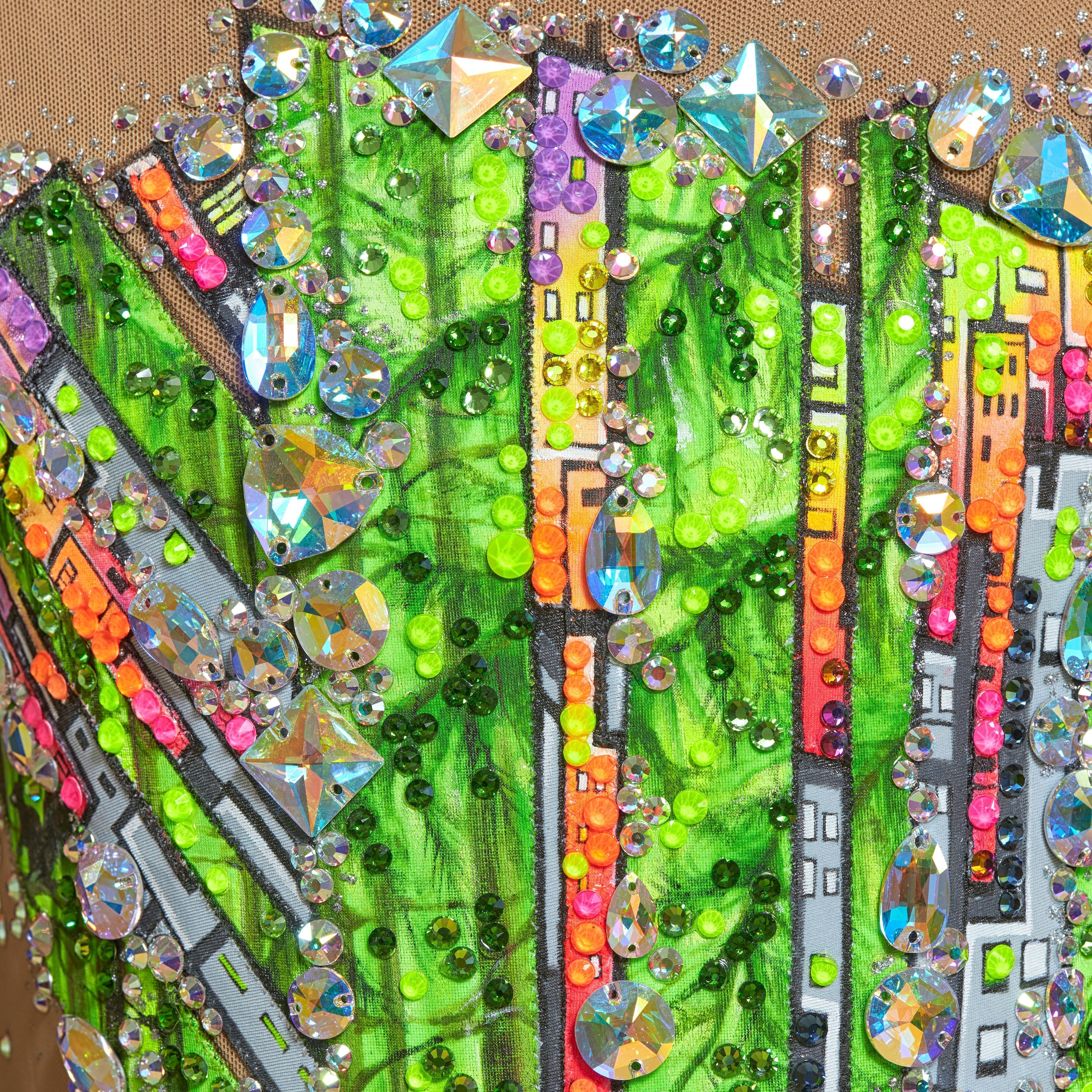Стилистика коллажа идеально подходит для этой цели. Многоцветные переливы и глубокие цвета делают купальник по-настоящему уникальным. Как настоящий самоцвет!