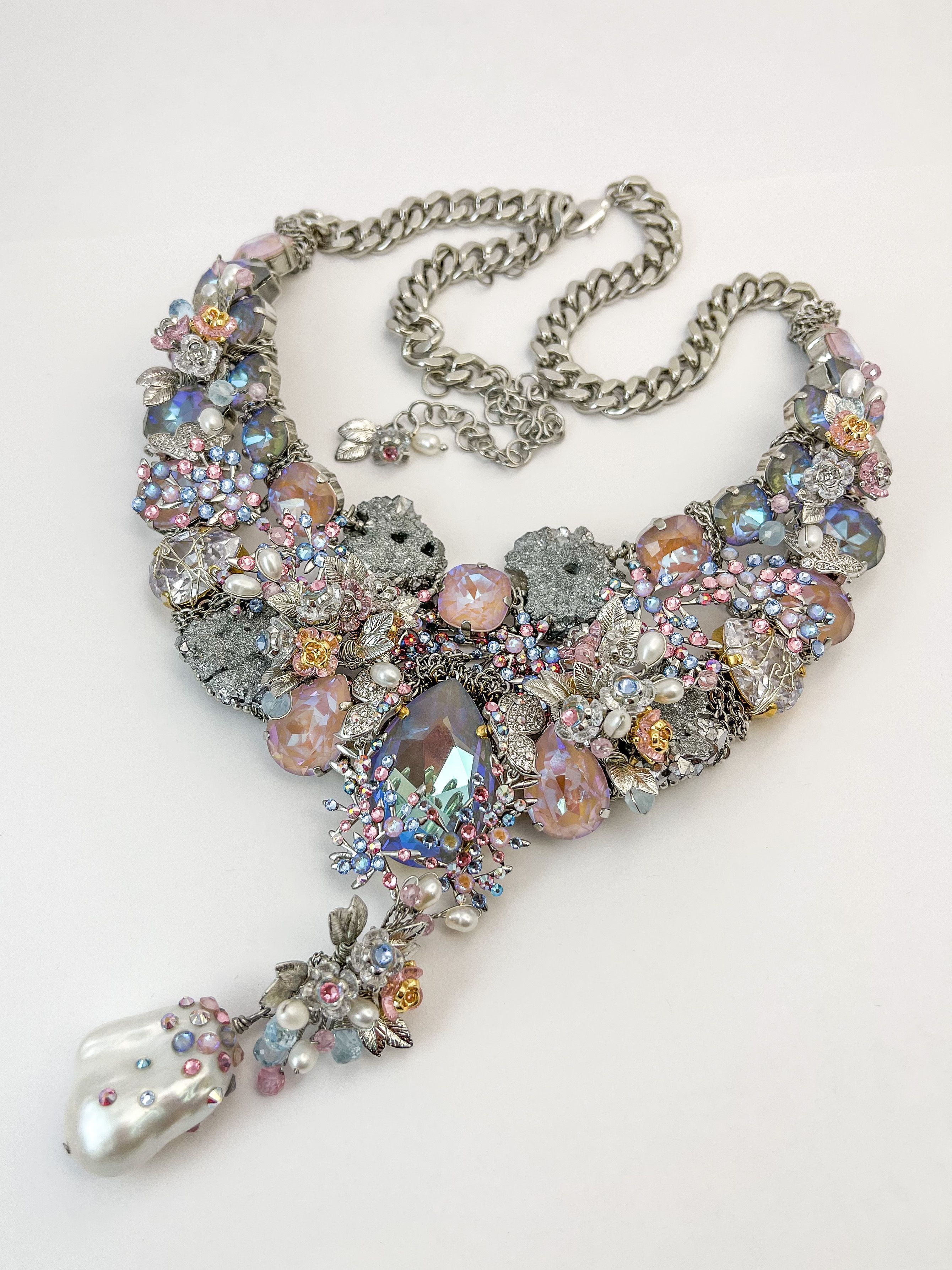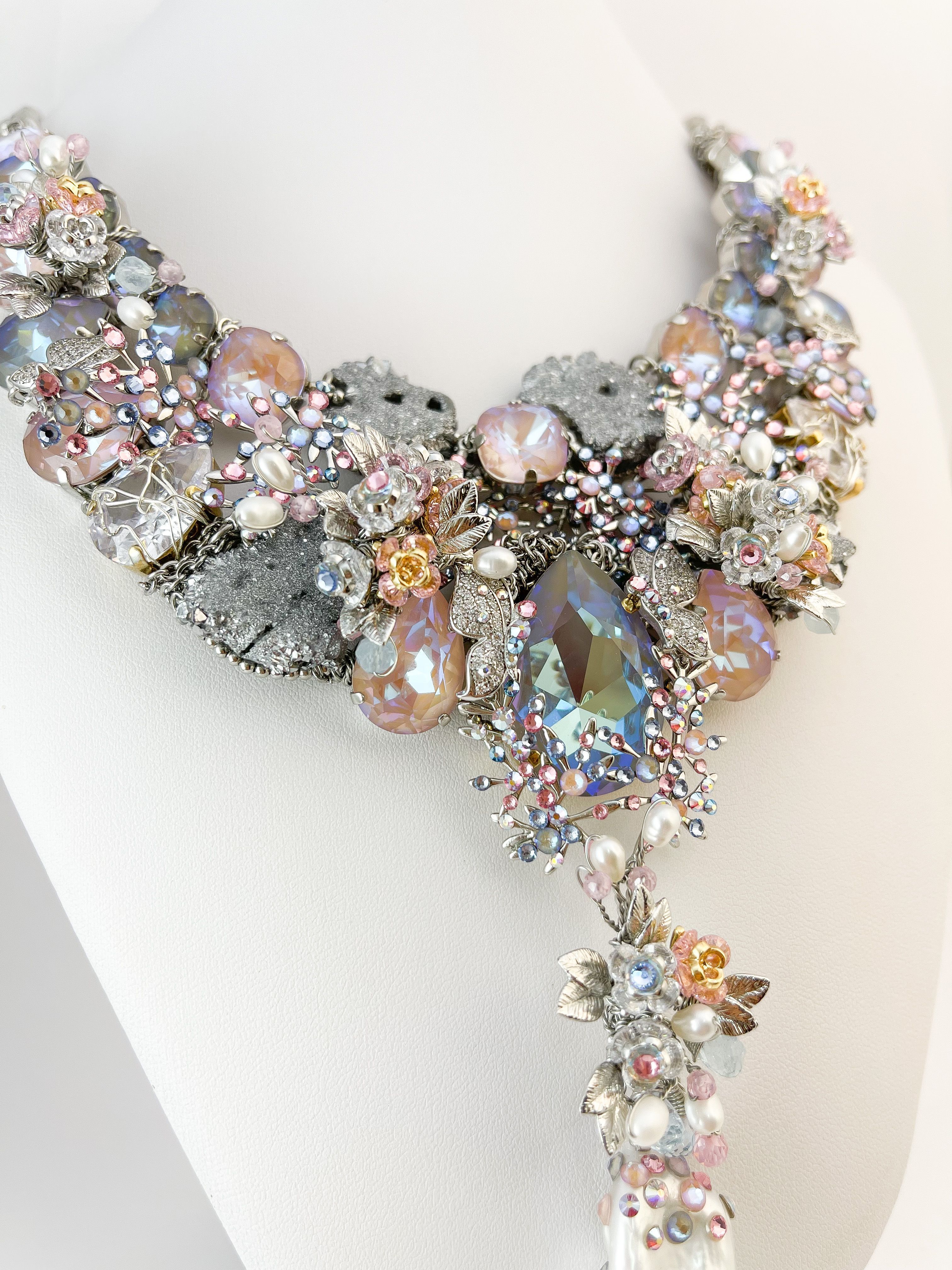 Как скола воплощает мужество и силу. Как порхающая бабочка показывает нам всю трепетность течения времени, и цветы благоухают самыми вкусными красками. Топазы, словно капли водопада, стекают по лепесткам цветов. Мельчайшие кристаллы небрежно рассыпаны как будто брызги воды. Так хочется освободиться от оков ежедневной рутины и напиться чистой водой, и надышаться свежим ветром. Вот оно совершенство мира в естественном воплощении природы.
