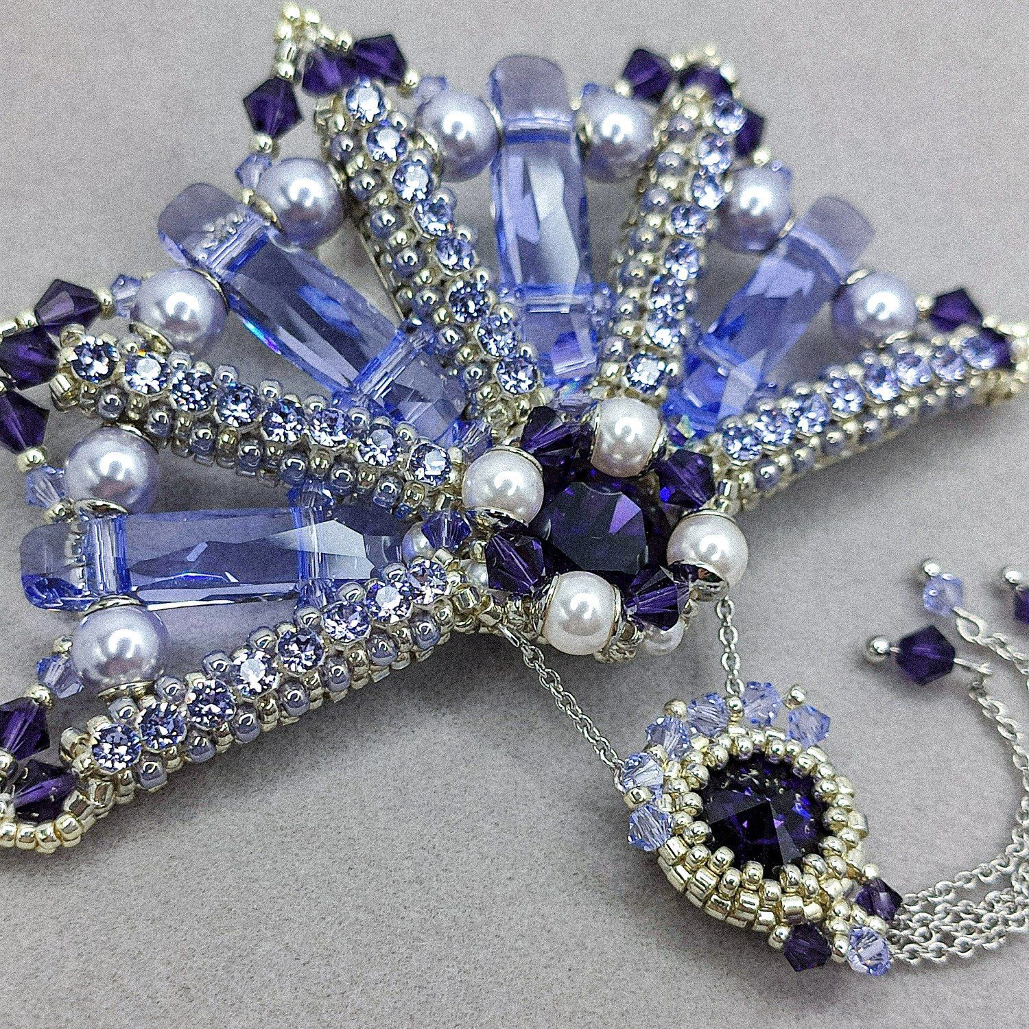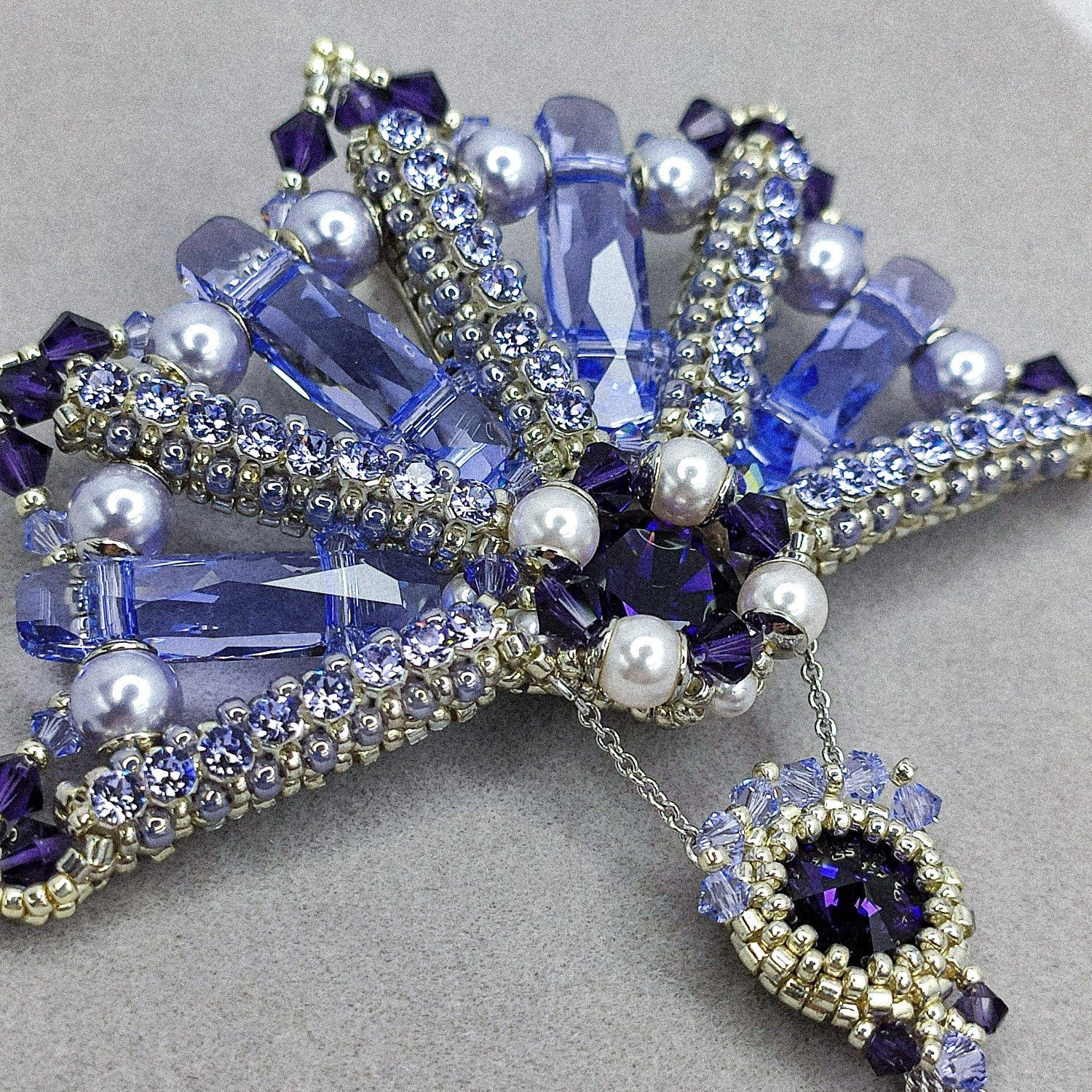 Брошь полность выполнена в технике ювелирного плетения. Благодаря прозрачности и веерному расположению бусин Column (two holes) брошь приломляет большое количество света и сохраняет деликатное сияние при любом ракурсе. Танец световых бликов на гранях создаёт особую магию...