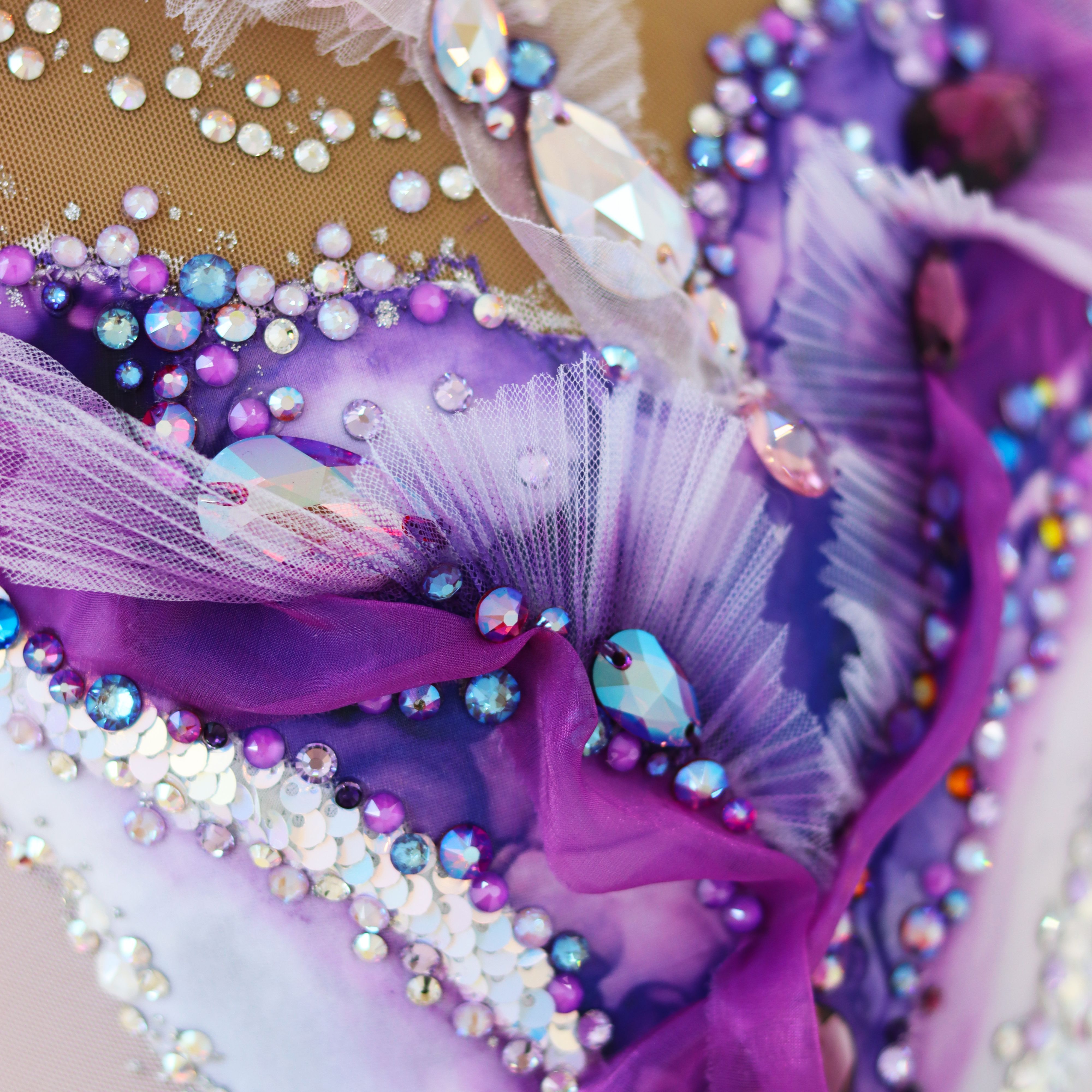 Лейтмотивом работы «Breath of love» является цвет. Удивительные, завораживающие оттенки фиолетового, лавандового, сиреневого… Грани этих невероятных, космических оттенков раскрываются особенно ярко в сочетании с красотой и глубиной кристаллов .evoli