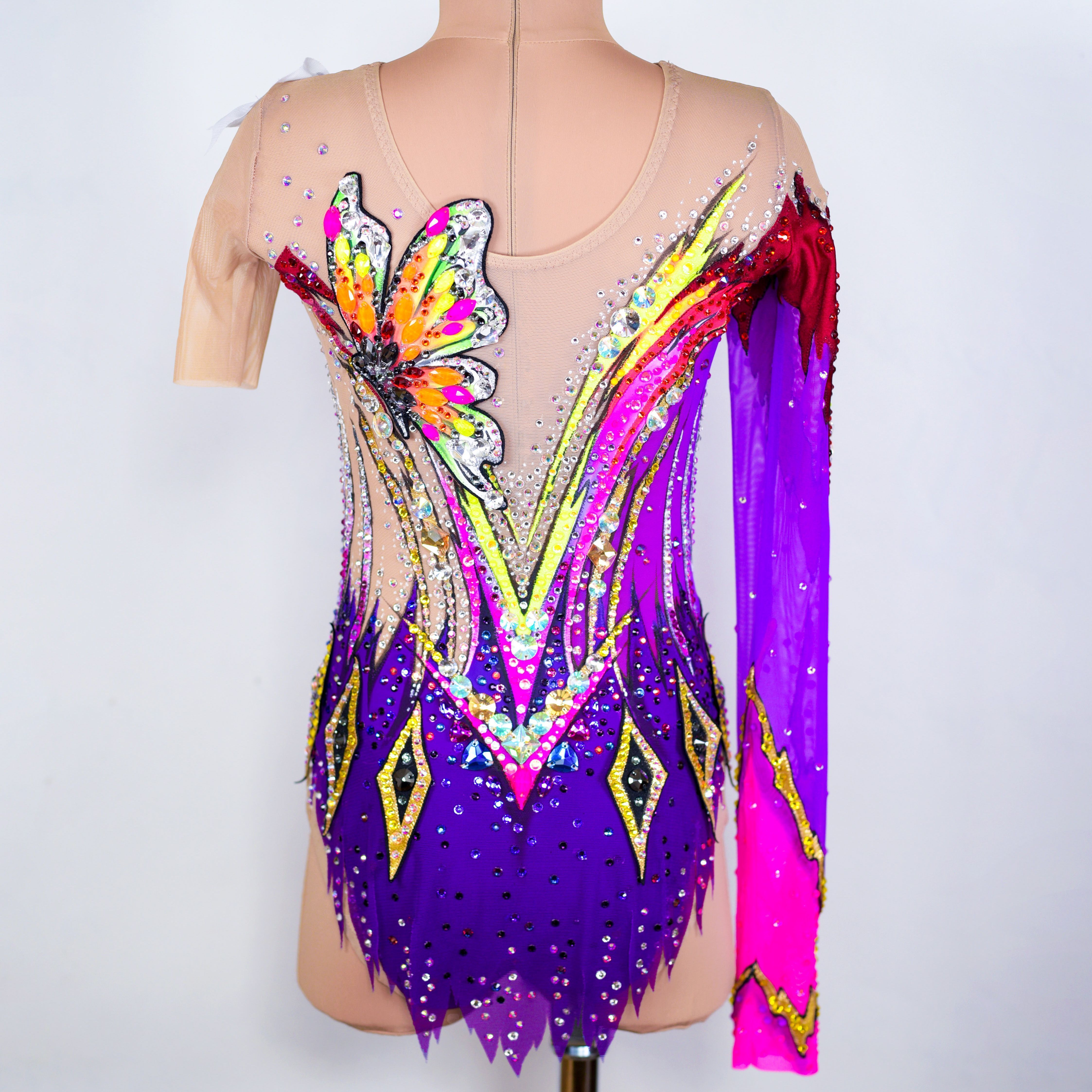 Создавая купальник «Чужестранка» мы взяли за основу фиолетовый цвет - цвет мудрости, трансформации и перевоплощений, а в сочетании с неоновым жёлтым, оранжевым и бордовым он создает противоречивый, вызывающий и яркий образ, который притягивает взгляд и практически заставляет обратить на себя внимание.