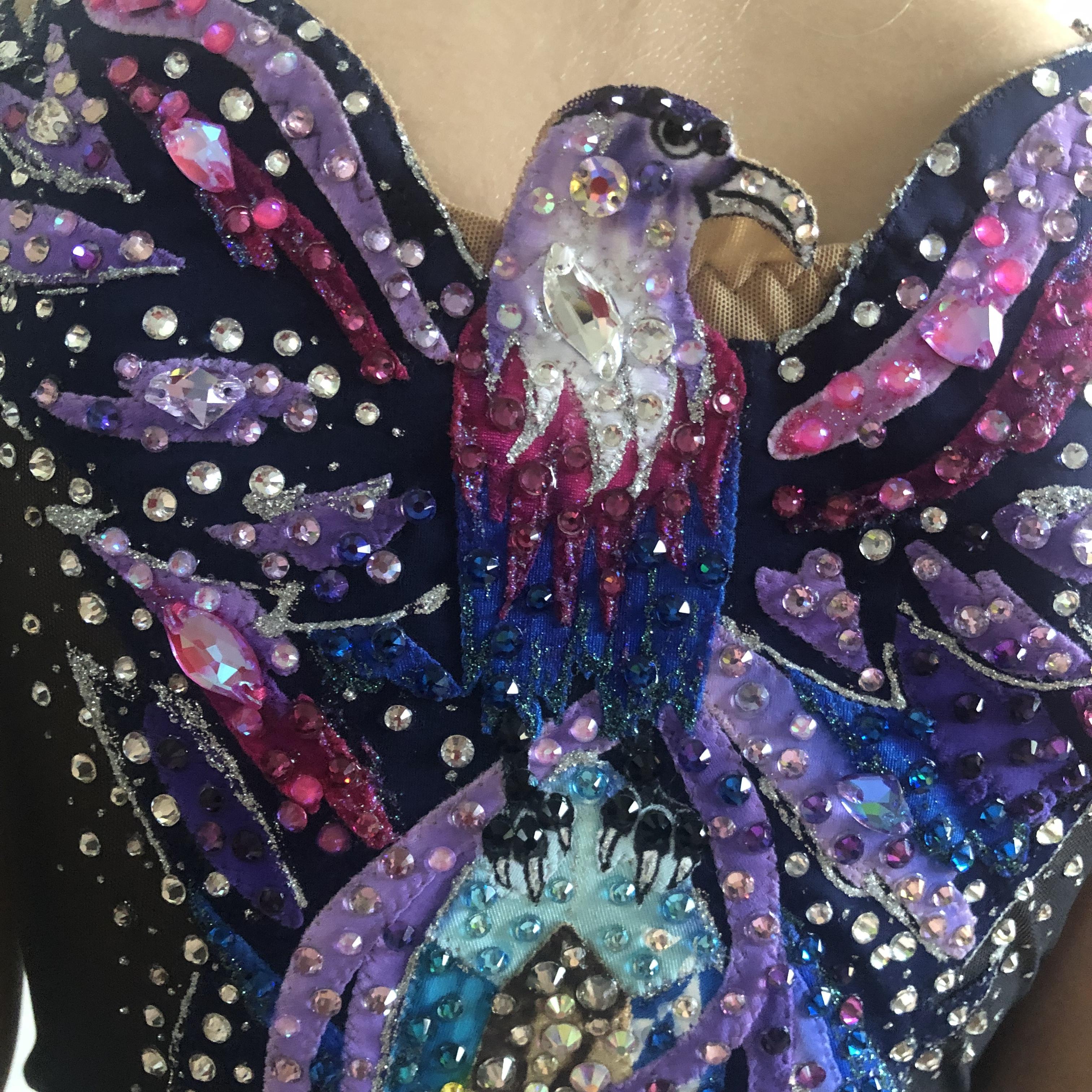 Идея сложилась только спустя 1,5 месяца. Я приняла не стандартное для себя решение, нарисовав большой кристалл на груди купальника. Он, как сияющая звезда, окруженный космическим блеском, сиянием вселенной - этим многообразием красок.