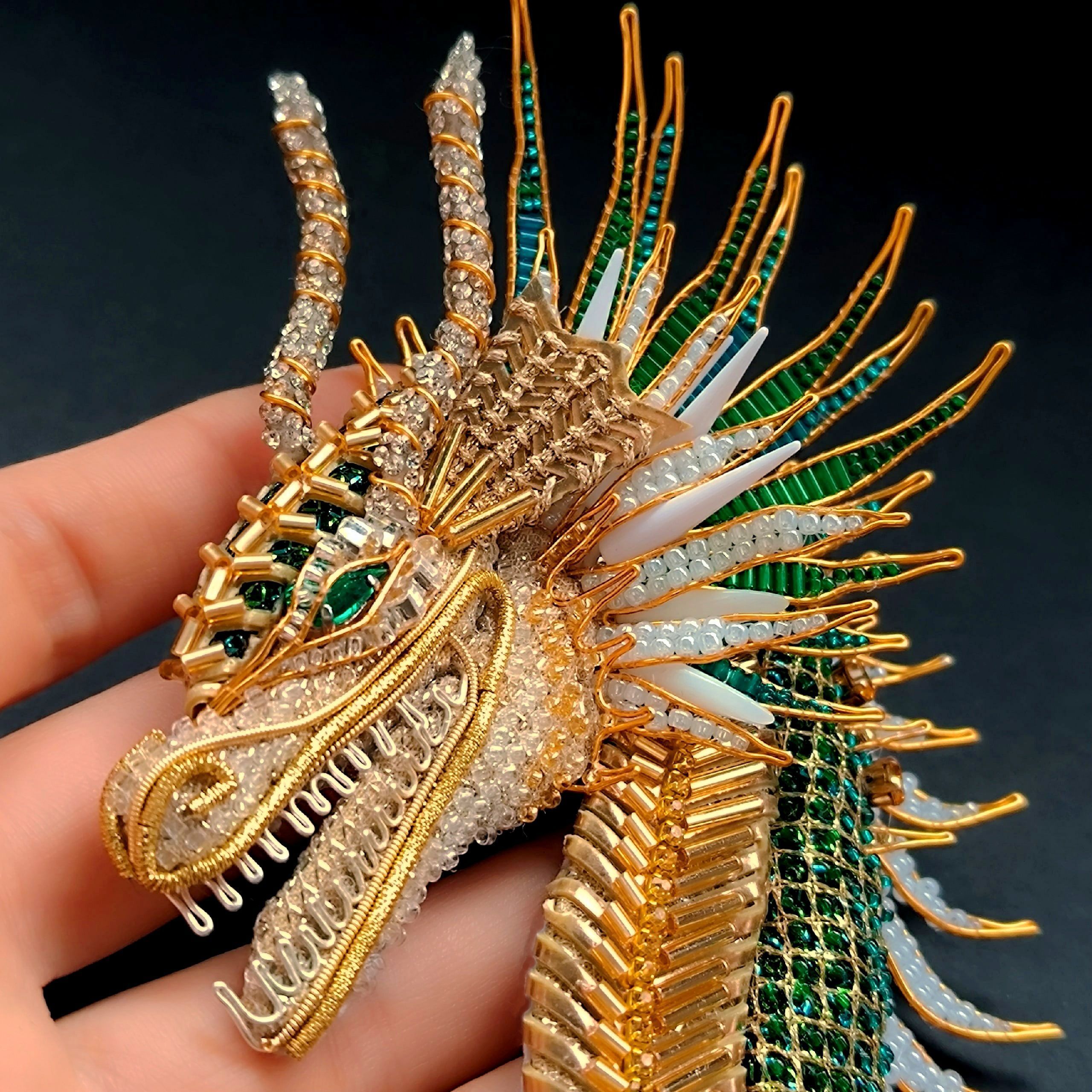 Брошь "Дракон Изумруд"