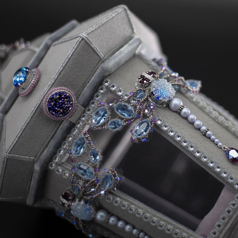 Коллекция кристаллов «Время сиять» вдохновила меня своей нежной гаммой, прозрачными кристаллами и новыми формами камней. Все эти моменты мне захотелось отразить в конкурсной работе.