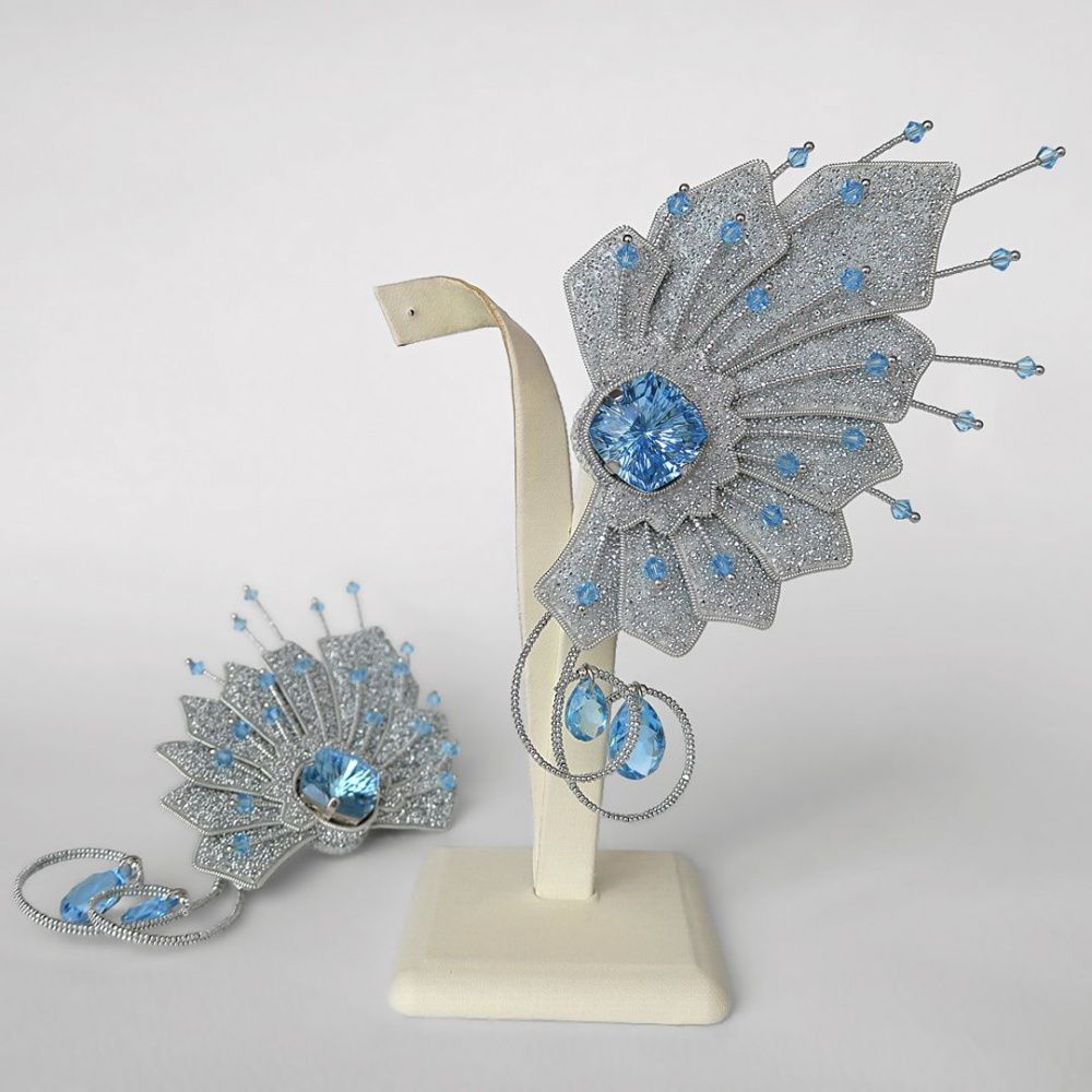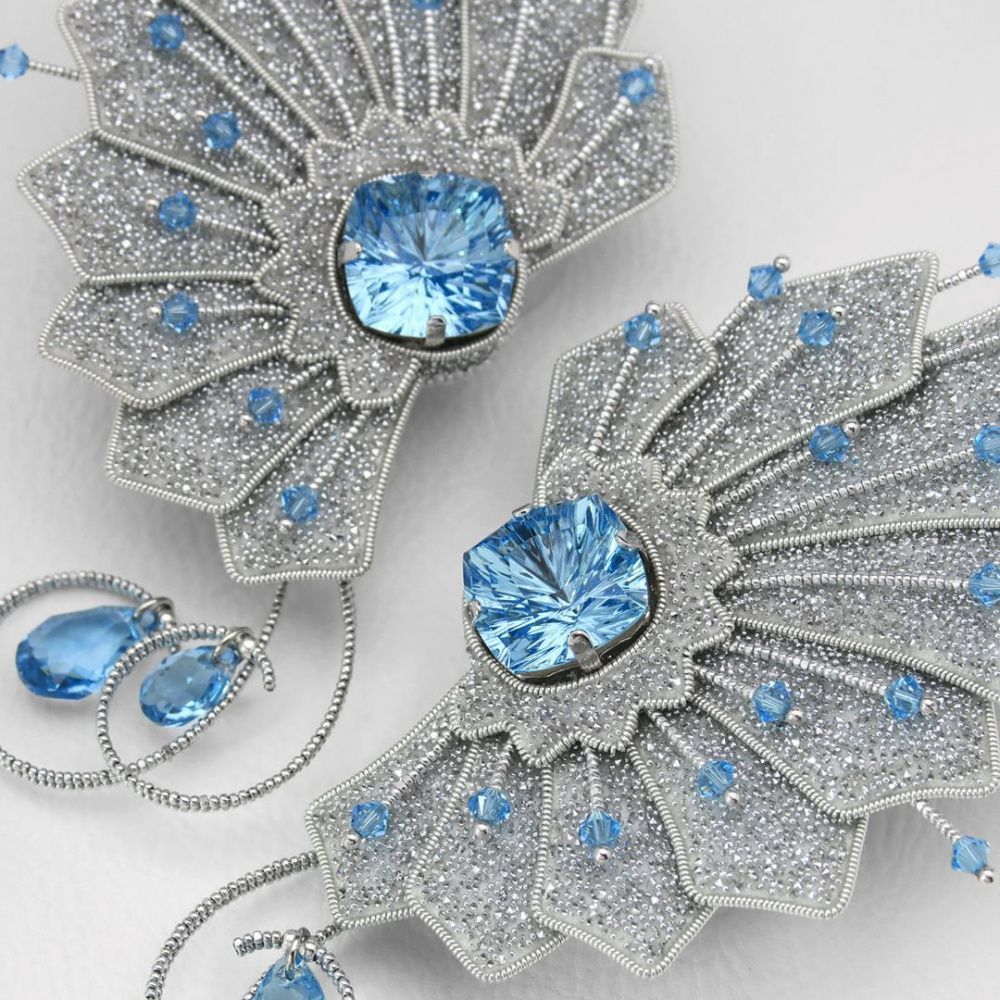 Форма украшения родилась из самого кристалла Mystic Square, именно его уникальная огранка подсказала, как этот "big bang" ("большой бабах") должен быть выражен в физической форме. В работе среди прочей продукции Swarovski использованы кристаллы цвета аквамарин, они – словно кусочек чистого безоблачного неба, как глоток свежего воздуха, как вера в то, что всё обязательно будет хорошо. И новое будущее непременно откроет нам огромный мир поразительных возможностей.