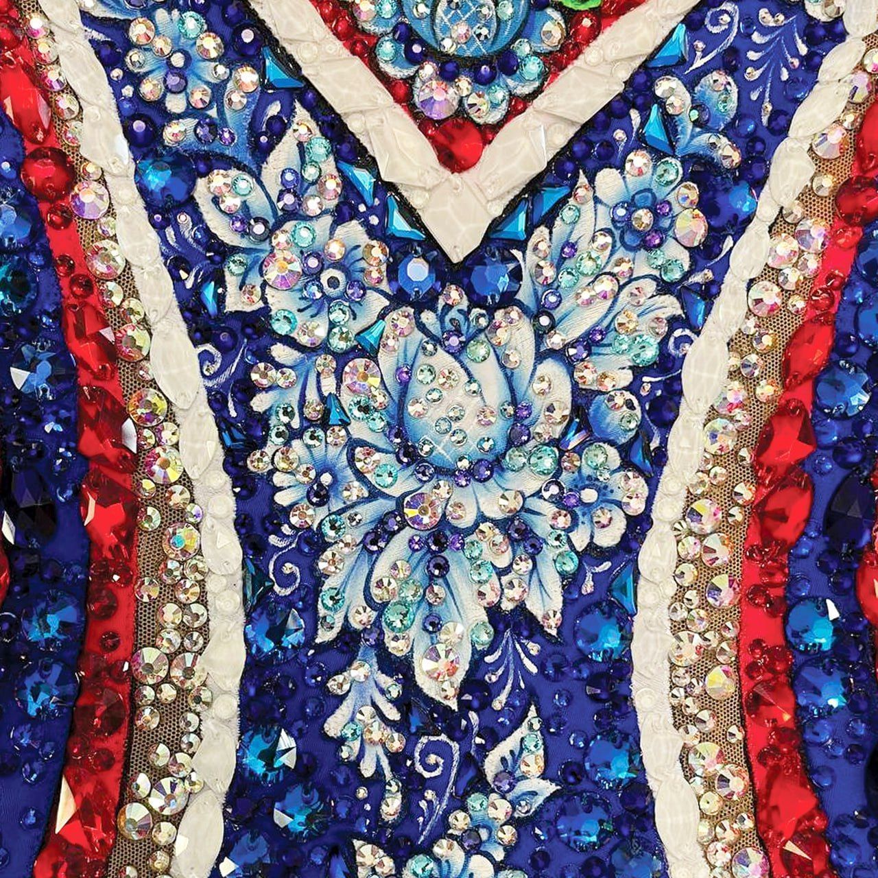 Свет прожектора выделяет хрупкую фигурку девушки. Её наряд, купальник с ярким орнаментом и расписными элементами. Сила Гжель-девицы – в наследии предков, в культуре и самобытности русского народа. Сила в красоте, трудолюбии, таланте, искусстве, мудрости предков, верности традициям. Гжель-девица стоит на страже традиций России.