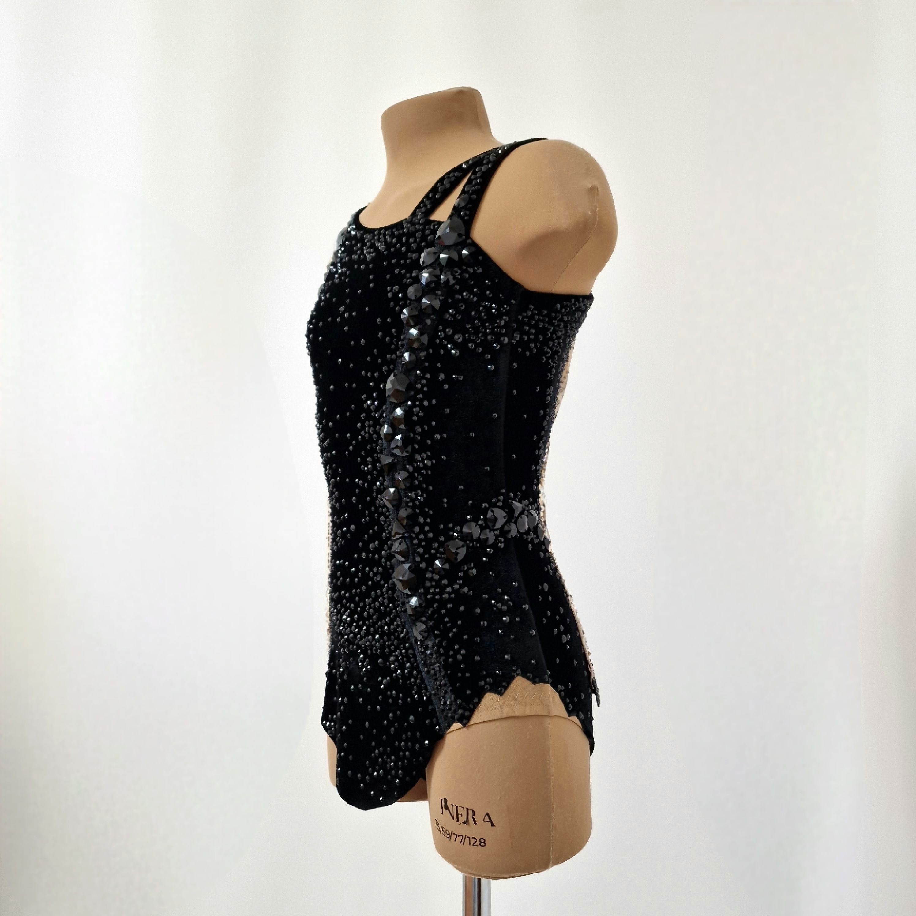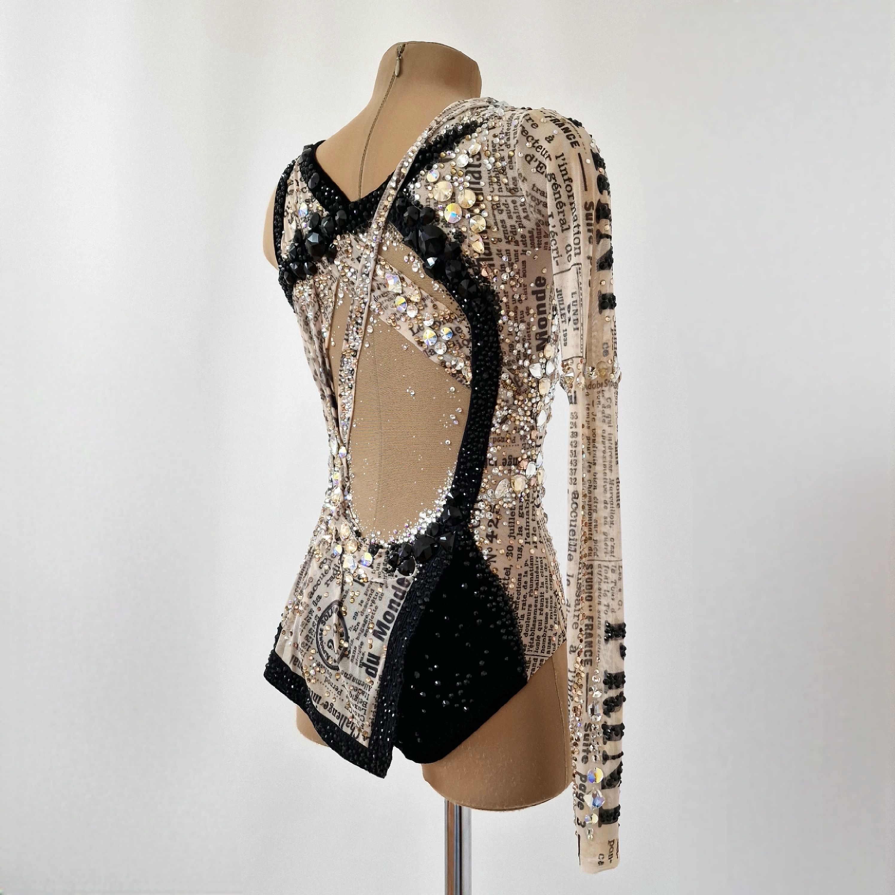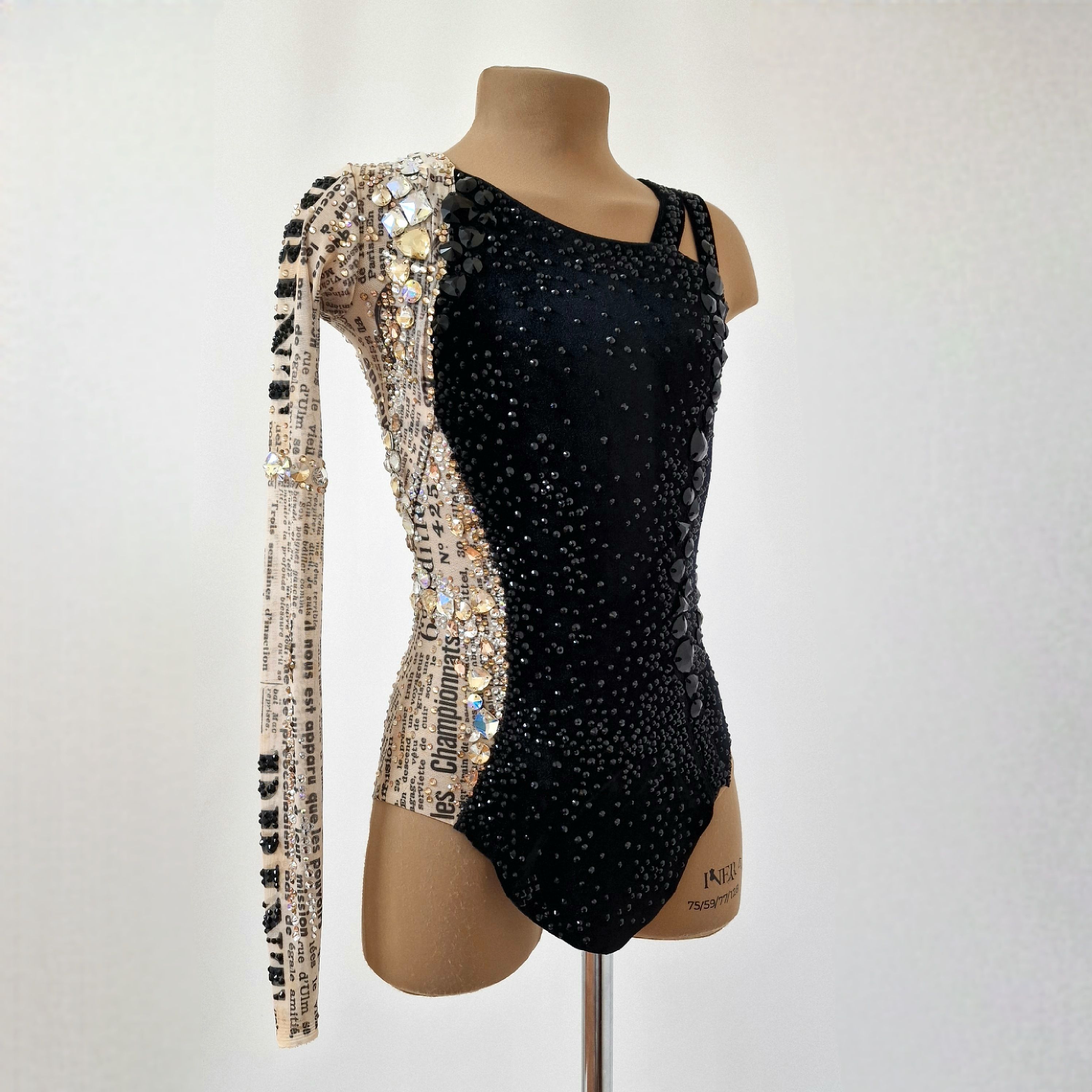 Купальник для художественной гимнастики "Мадемуазель Коко", создан по мотивам маленького чёрного платья - легенды мира моды. Он будто отражает жизнь знаменитой Габриель. С одной стороны - блеск, роскошь и признание, с другой - интриги, зависть и сплетни.