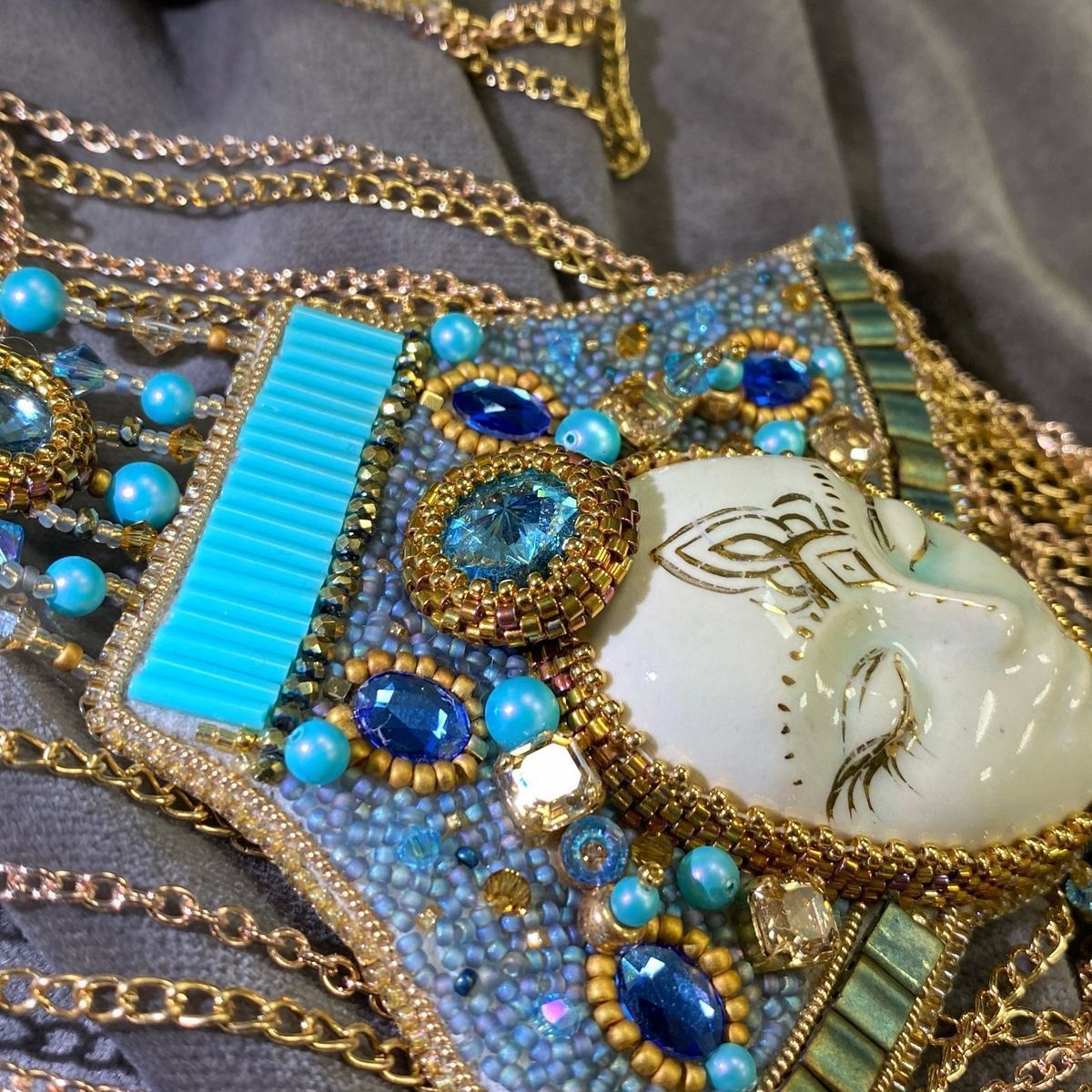 Анукет - богиня реки Нил и связана с годовым наводнением, которое «обняло» близлежащие поля и дало жизнь урожаю. Украшения в египетском стиле всегда модны и актуальны,и находят отклик в работах и у великих кутюрье и дизайнеров, и в работах простых мастериц как я. Этот стиль украшений всегда можно вписать в повседневный и праздничный гардероб. Вдохновляясь традициями, создаем будущее. Создавать украшения стоит именно так. Вдохновляясь уже созданными в веках шедеврами, стилями, вносить свое видение и модные ныне акценты в свои украшения.Тем самым бережно сохраняя прошлое, создавать будущее.