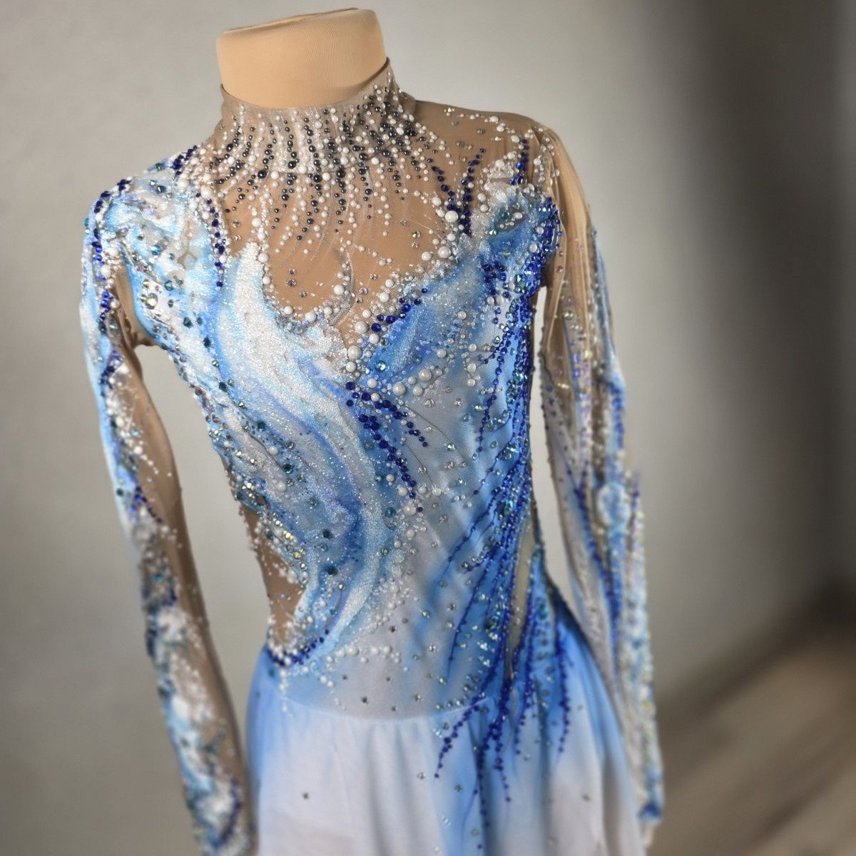 Изделие отражает атмосферу этого изысканного события, наполненного нежностью и свежестью. Основные цвета, использованные в работе, — голубой и синий, символизирующие спокойствие, гармонию и чистоту.  Образ балетных пар, грациозных и легких, словно легкий ветерок, проносящийся по залу. Эти оттенки создают ощущение прохлады и свежести, напоминая о зимних вечерах, когда Венский бал традиционно проходит в феврале. Я старалась передать в своей работе всю ту нежность и изящность, которые присущи этому празднику. Голубой и синий цвета помогают усилить ощущение спокойствия и гармонии, а также подчеркнуть элегантность и утонченность сцены. В целом, моя работа — это попытка передать атмосферу февральского Венского бала, его изящество и свежесть, а также вдохновляющую нежность, которая наполняет сердце каждого участника этого великолепного события.