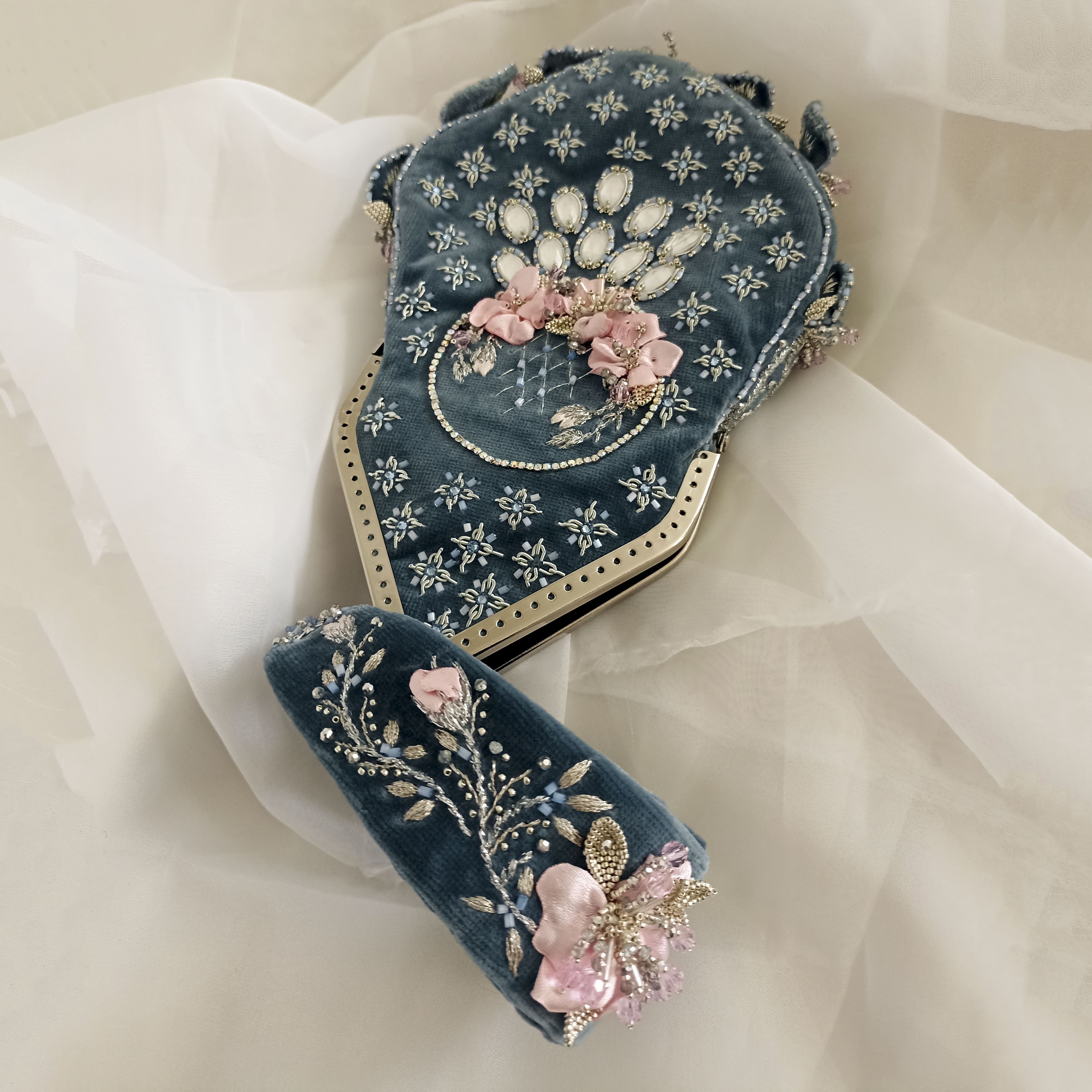 Карета подъехала к парадному крыльцу и, поднявшись по ступеням, мы оказались в парадном зале. Он сиял множеством огней, исходящих от золотых стен и украшений дам. Юные участницы бала были наряжены в белоснежные платья и драгоценности, выдержанные в светлых, пастельных тонах. Остальные участники бала выбирали свой цвет: у меня был голубой. И сумочку выбрала под стать платью — нежно-голубую с россыпью блестящих камней, которые образовывали кольцо с веером.