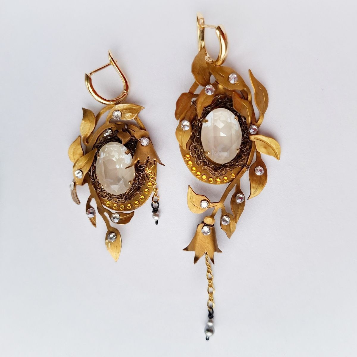 Асимметричные, притягивающие взгляд. Декоративные композиции на правой и левой серьге не повторяются, но дополняют друг друга. Совершенная классика природы, никогда не выходящая из моды.